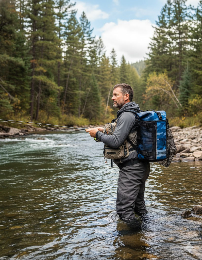 Pensé pour les pêcheurs qui affrontent les éléments, ce sac 100 % étanche garde vos vêtements, boîtes de leurres et accessoires parfaitement au sec. Pluie, embruns, éclaboussures ou waders dégoulinants : rien ne l’arrête. Son portage ergonomique, renforcé par des sangles pectorales et ventrales ajustables, offre confort et stabilité pendant les longues marches le long des berges ou vers des spots isolés. Un compagnon fiable, robuste et pratique, indispensable pour toutes vos sorties pêche, du street-fishing aux sessions en bateau.