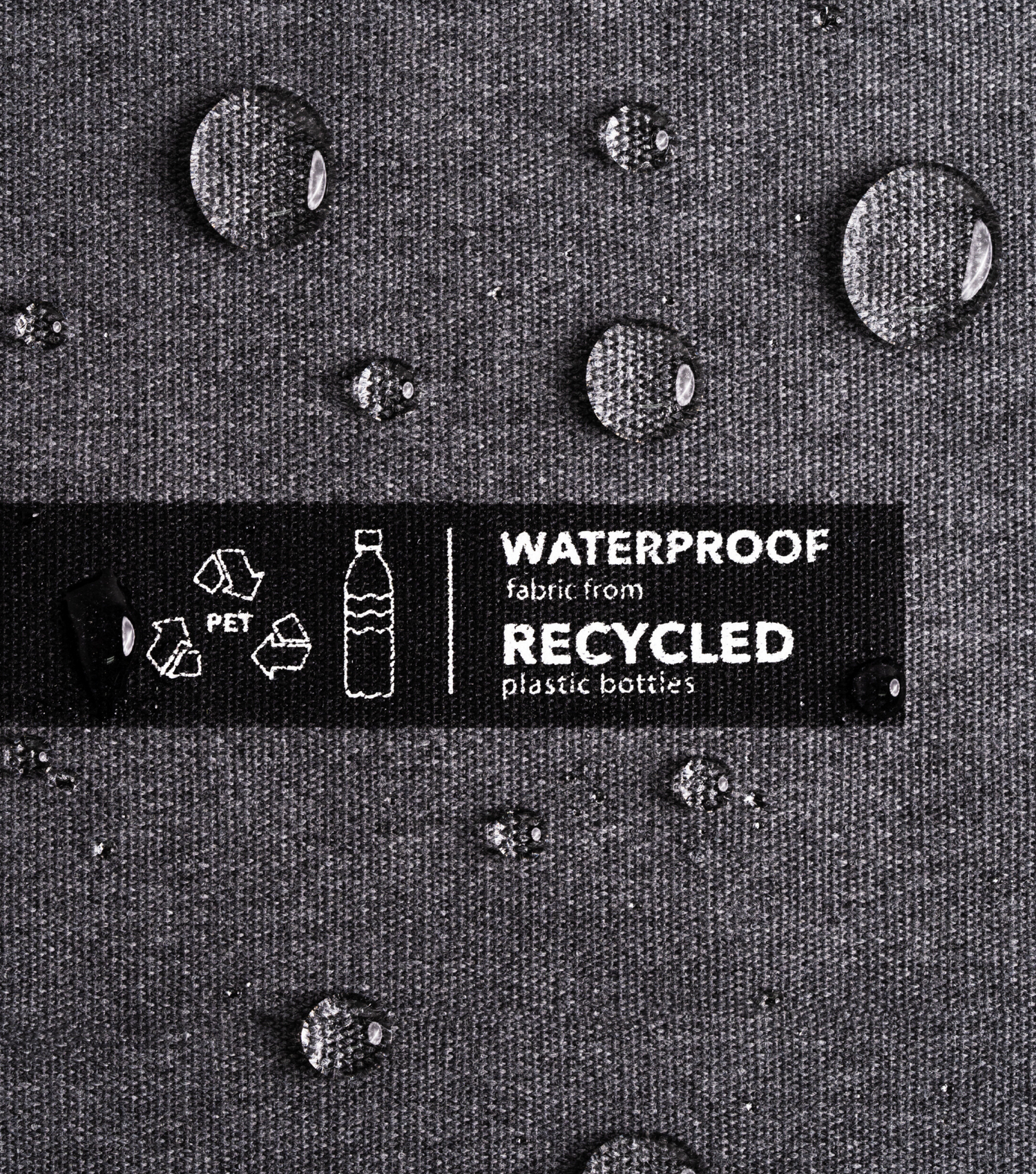 Nuestro tejido PET, elaborado a partir del reciclaje de millones de botellas de plástico, nos ofrece nuevas perspectivas de desarrollo, hacia un futuro más verde.