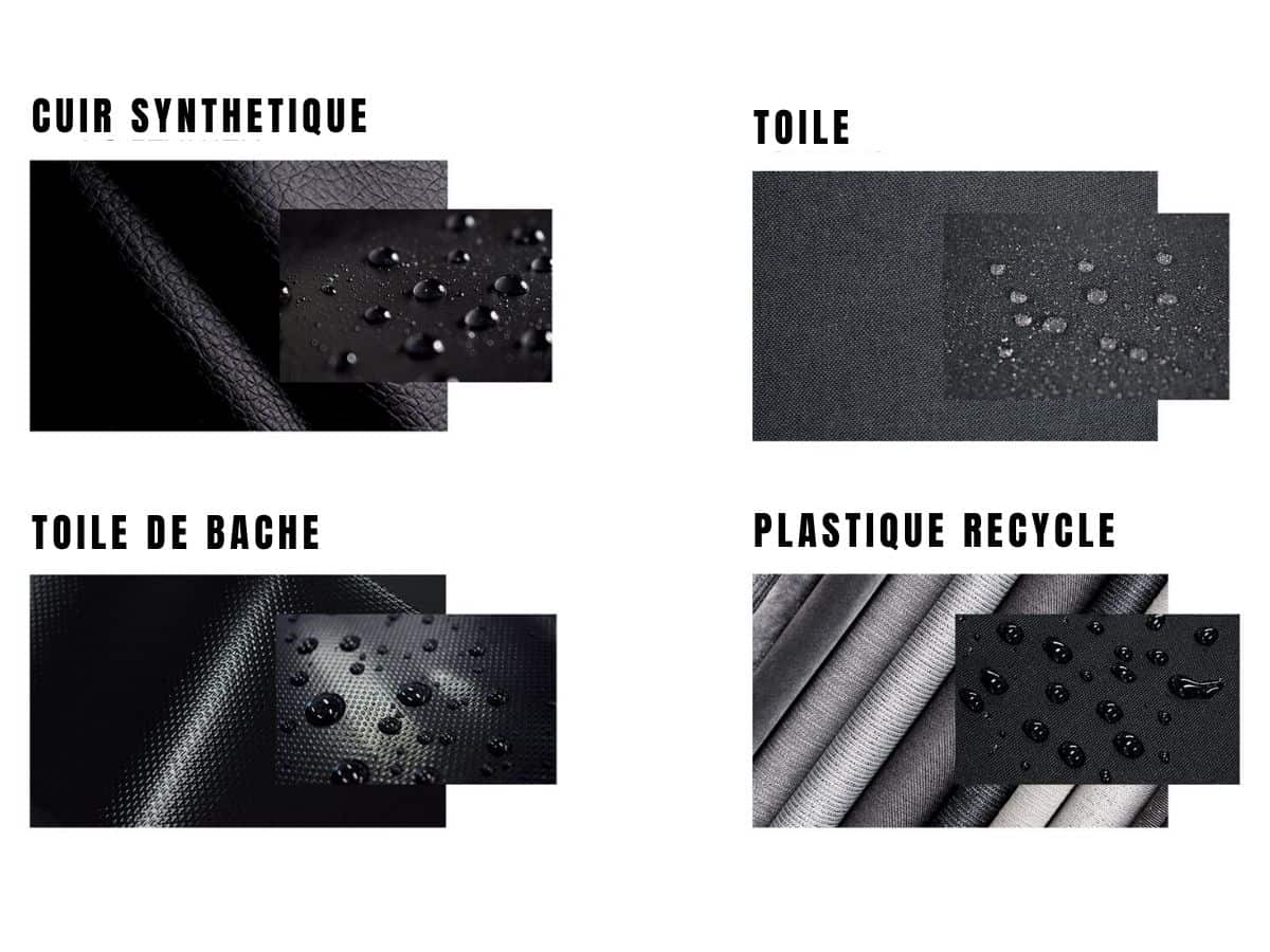 Le Tarpaulin, c'est une bâche quadri-fibrée de 0.7 mm. Un matériau 100% étanche, extrêmement résistant, durable, et facile à nettoyer.